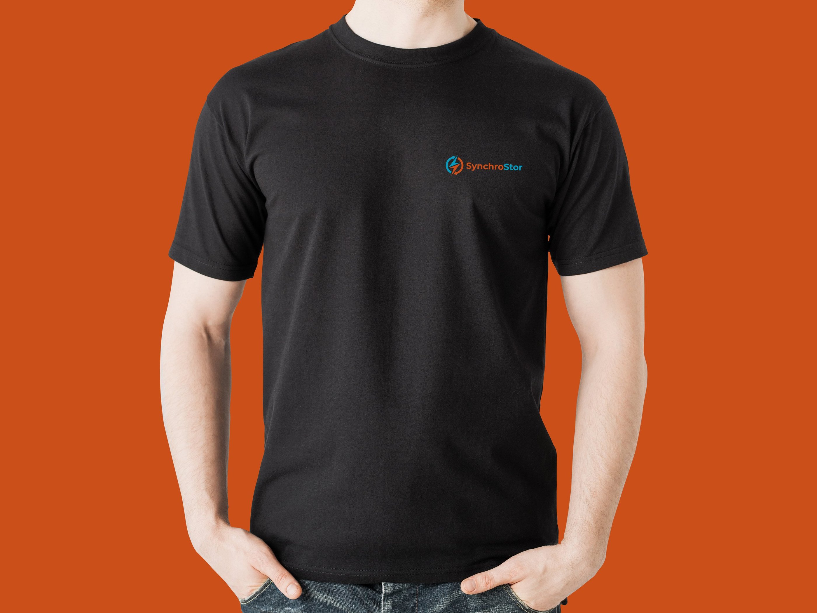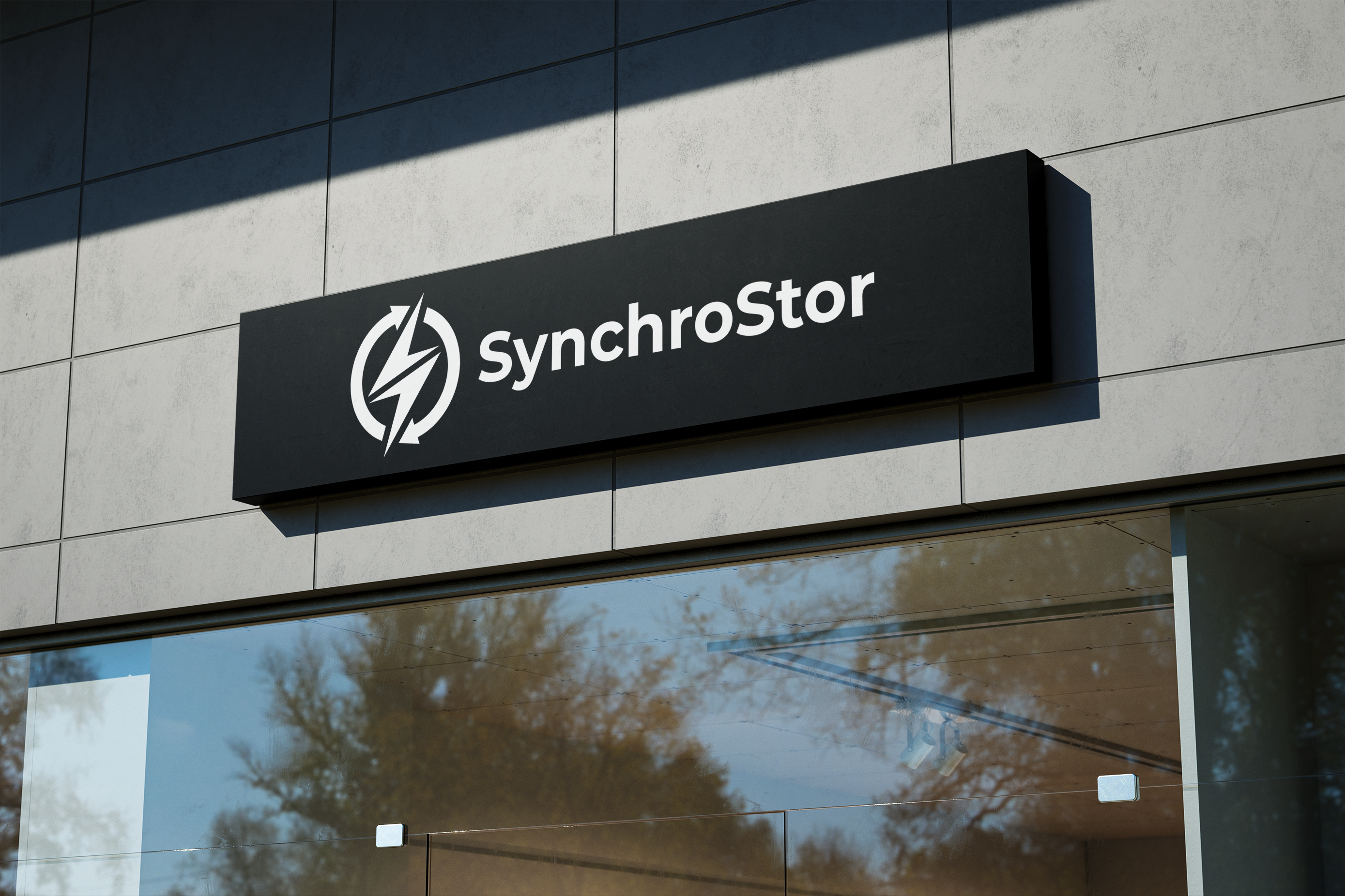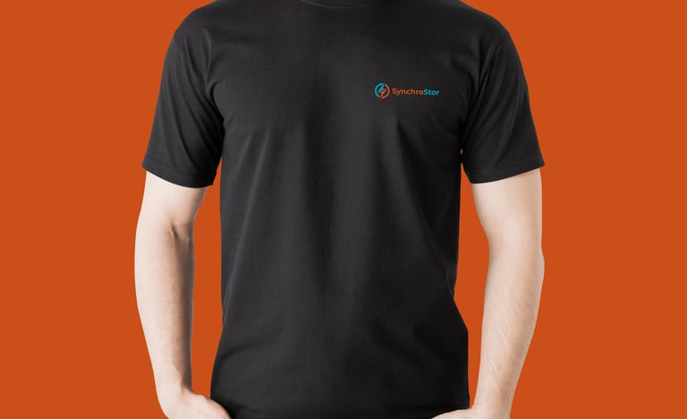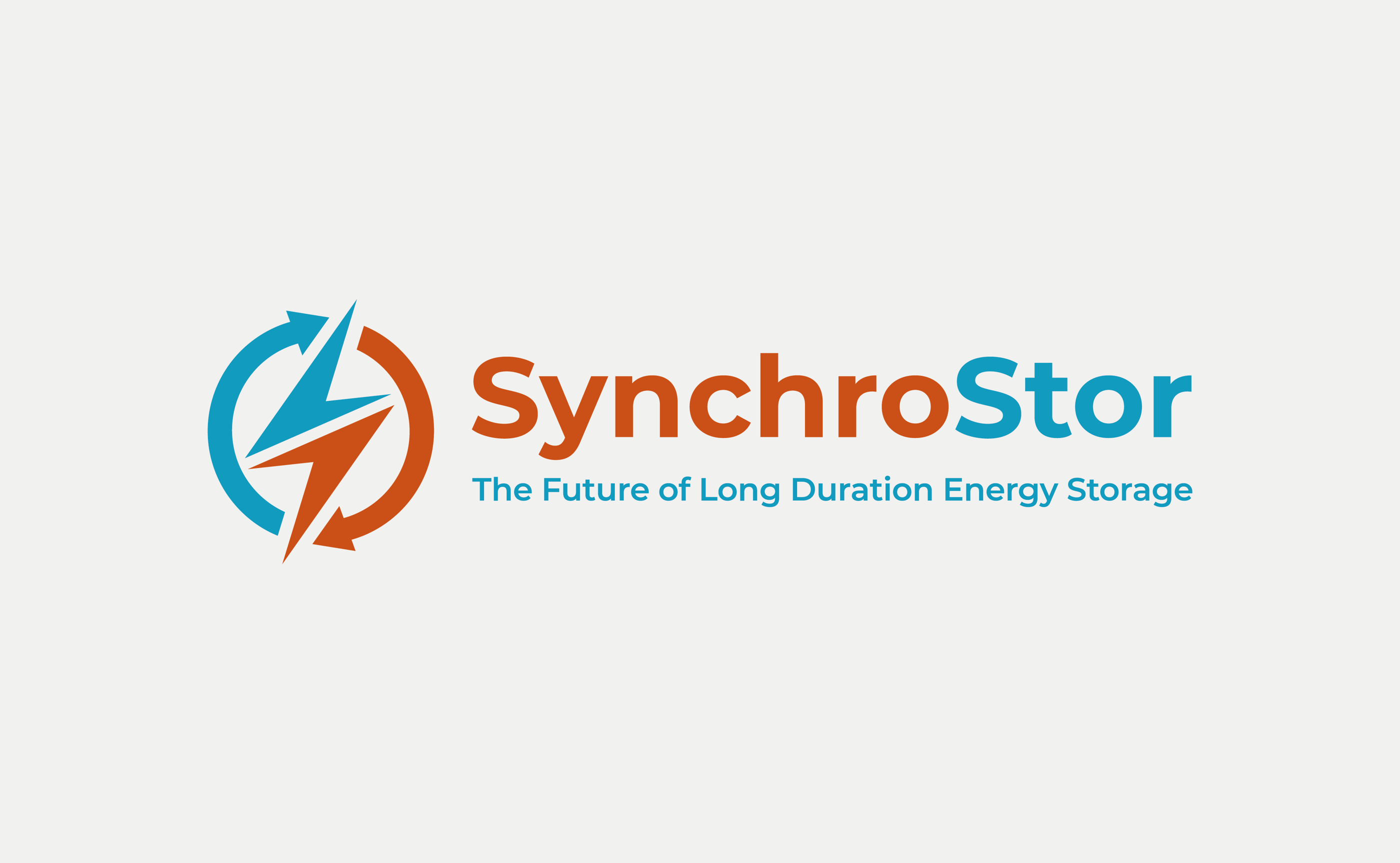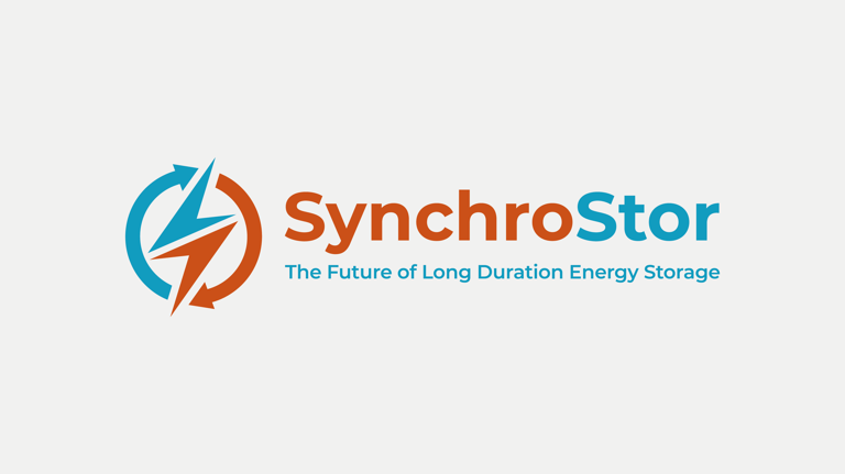 SynchroStor is an engineering R&D business founded in 2017 with the express purpose of developing a cost-effective grid-scale energy storage technology using pumped heat. They would like to simplify their logo, ensuring that it unambiguously implies electricity is involved, reflects circularity of the process, implies a closed cycle, hot/cold to be obvious, contemporary, flat, easy-to-read design, likely to project well on screens, and easy to print on clothing. Read more about SynchroStor.