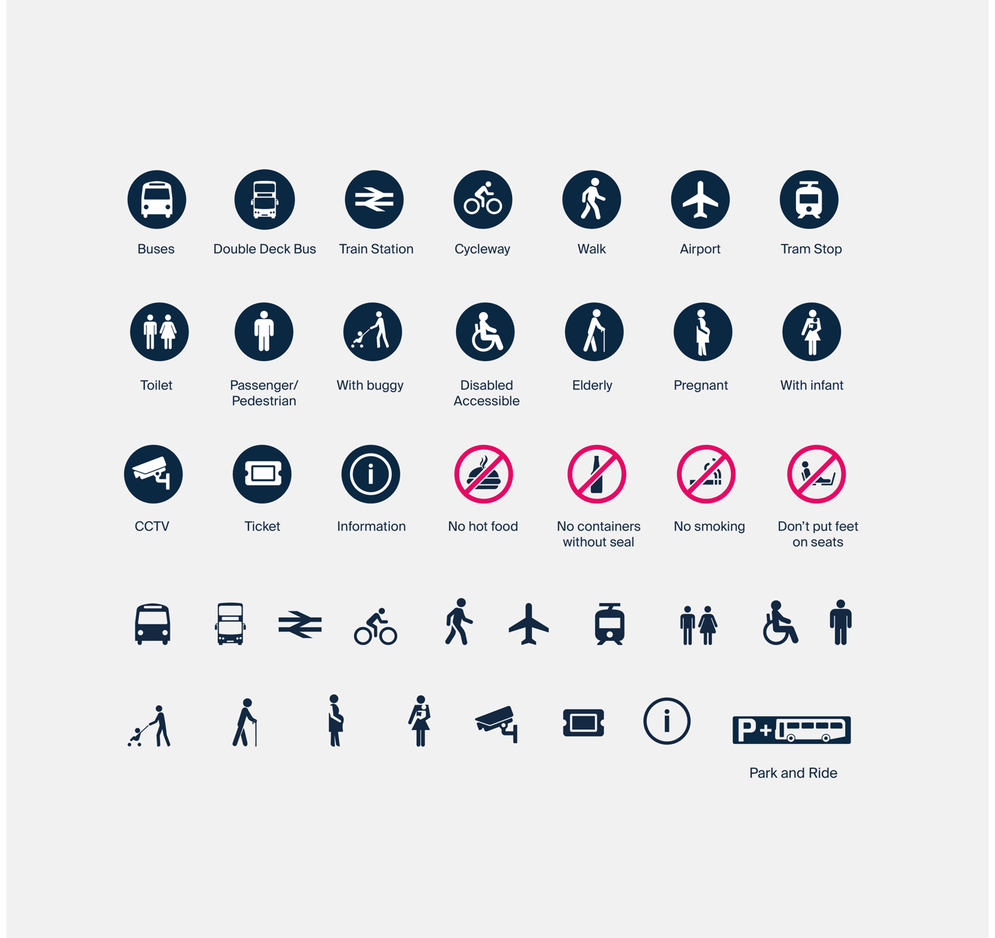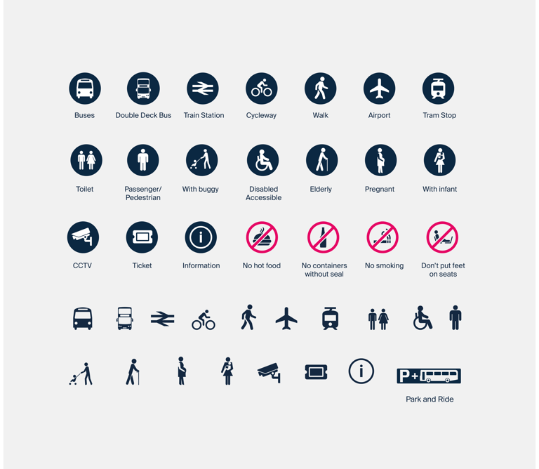 Pictograms are used to help convey the message to those who may have difficulties with the text. These familiar pictograms can be used on both digital and print designs.